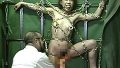 黒パンストの似合う美脚CAの響つかさをイカセまくり!!つかさのパンスト美脚にザーメンをぶっかけまくる!!CAの制服に、ノーパン黒パンストのつかさ。カメラに向かって美脚を強調した悩殺ポーズをとっていく。どMなつかさは見られている事に興奮し、黒パンストの股間部分から淫汁が漏れていく。そんなつかさに男達が近づき、舌を絡ませたベロキス。舌を引っ張りだしての舌嬲りに欲情させられたつかさは、顔の前に出された勃起チンポを咥えつつ、パンストの上から自分の股間を弄る。更に股間を勃起チンポで擦りつけられるパンスト素股にすっかり欲情して昇天!胸の谷間が丸見えのエロエロCA制服に着替え、目隠し両手両足拘束されたつかさ。近寄ってきた二人組の男に、媚○オイルをたっぷりと垂らされ、オイル塗れの美巨乳を揉みしだかれ、パンストの上から股間を集中的に電マ責めされると、体をビクビクと震わせる。黒パンストの股間部分を少し破られて、バイブ責め。更にディルド、電マ、指マン、クンニ…と立て続けに責められると、潮を噴きあげてイキまくる。床にへたり込みそうになったつかさの体を引き起こし、3Pセックスの開始!バックから突かれまくると、黒のハイヒール&黒パンスト美脚をガクガクと震わせる。腰砕け状態になって、立っているのもやっとなはずなのに、騎乗位では激しく腰を振りまくる。チンポが入っている間は、淫汁をダラダラと垂らして、チンポがひき抜かれる度に、ヴィッジャーっと噴水みたいに潮を高く噴き上げる。このとんでもなくビッチなCAが何度イッても、男達は入れ代わり立ち代わりでハメまくって、突きまくる追撃ファックに絶叫。白目をひん剥き昇天!!